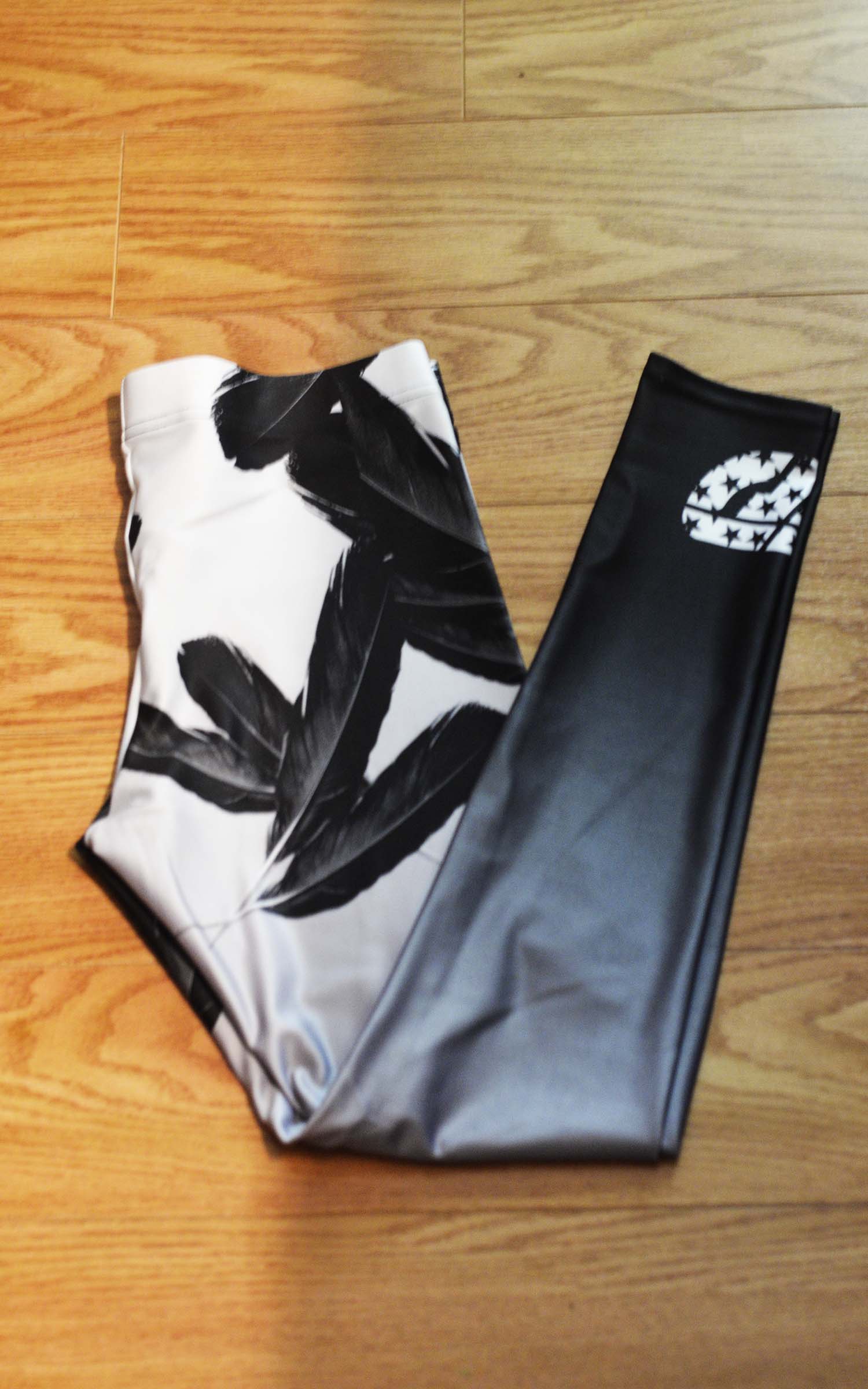 Really nice gradient design with oversize black feathers. Same great comfort, fit and wear. Fabric: 82% polyester, 18% spandex*