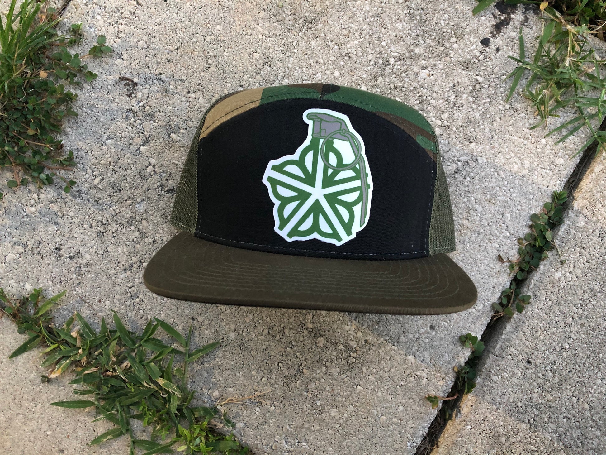 Our Range FUA collaboration features our first 7-panel snapback we've done features a 3'' sublimated patch, camouflage detail with mesh backing.